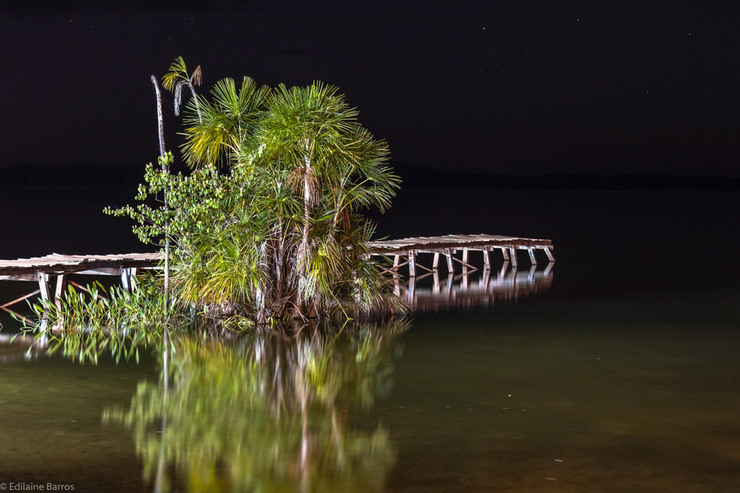 Mais tarde, fomos nos preparar para passar a noite em uma fazenda na Lagoa da Confusão. Quando anoiteceu, fomos brindados com um nascer de lua cheia, em meio a uma bela paisagem formada por árvores alagadas.